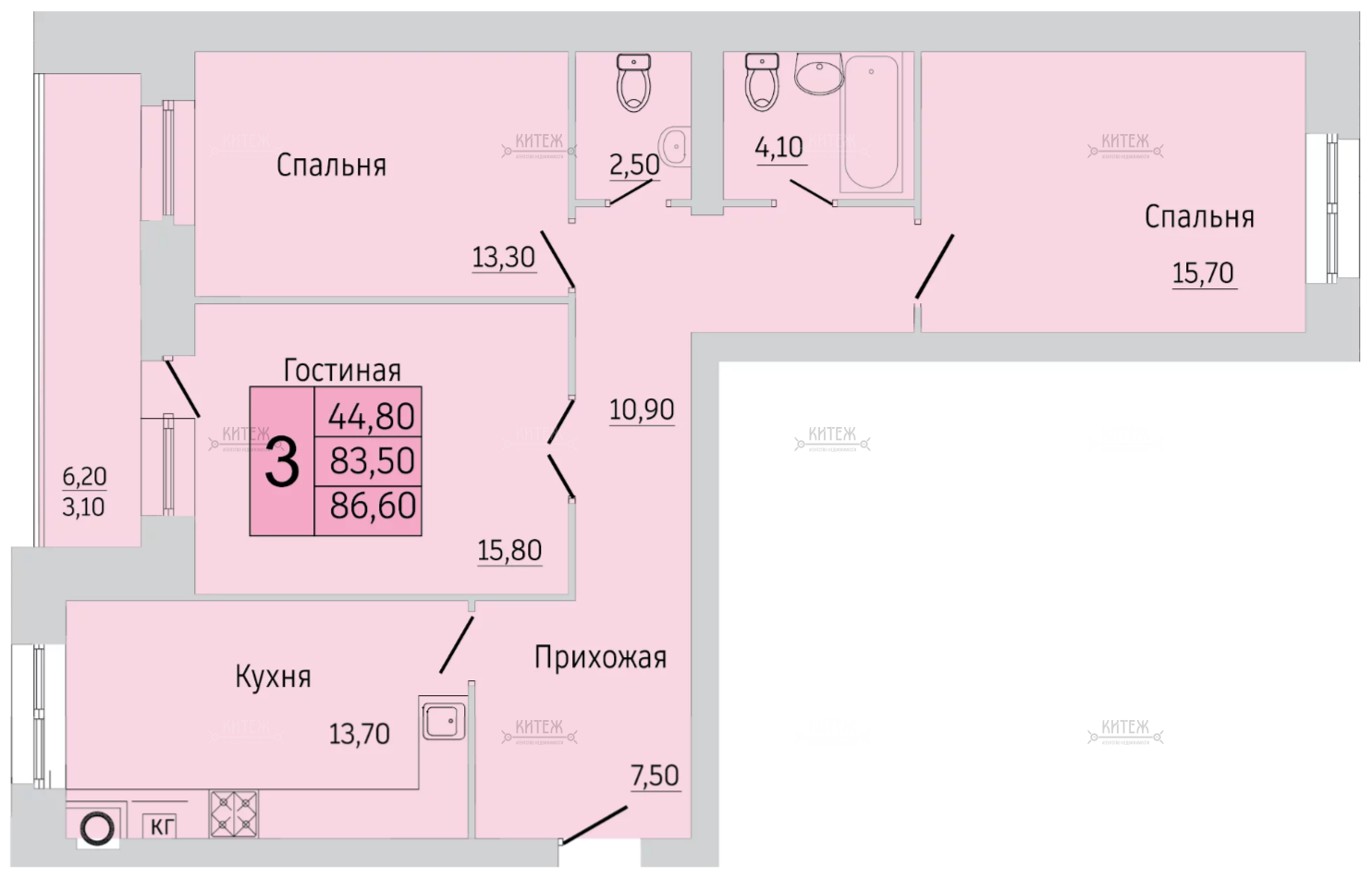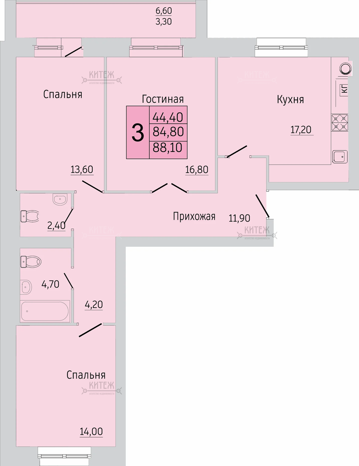 3-комн. квартира с индивидуальным отоплением в новом кирпичном доме в ЖК "Тимирязевский"...