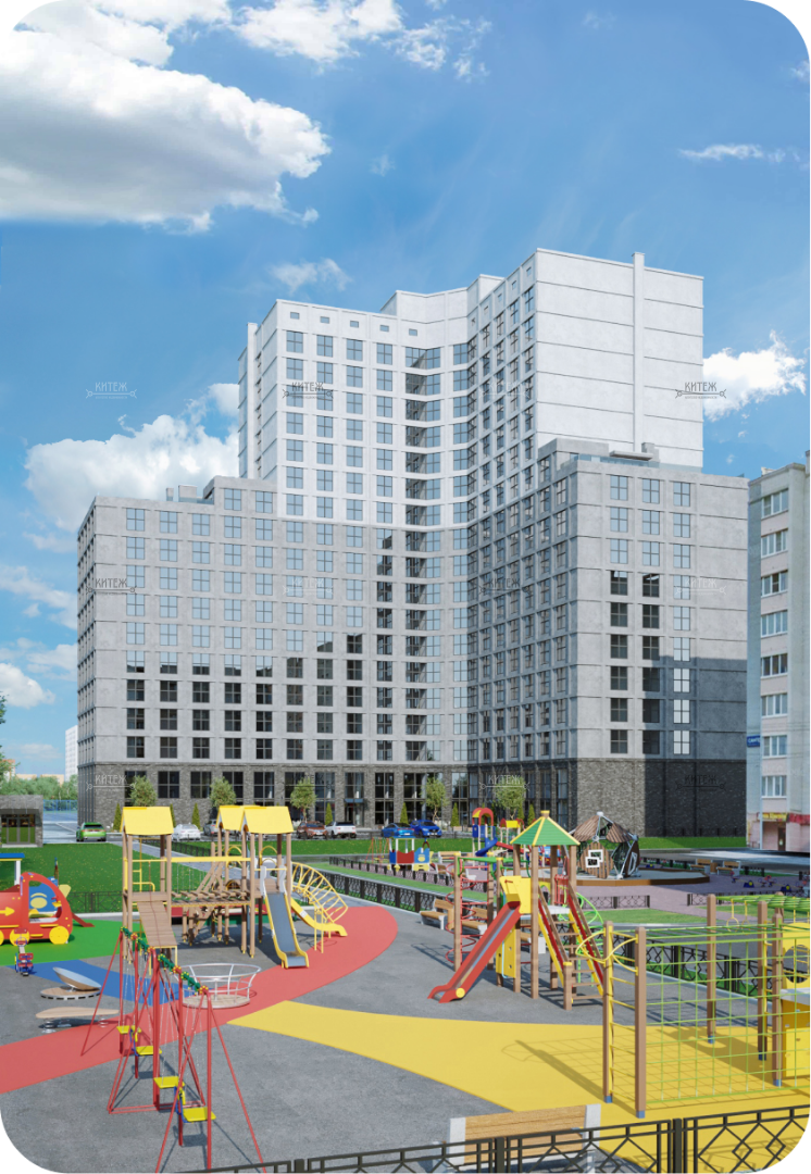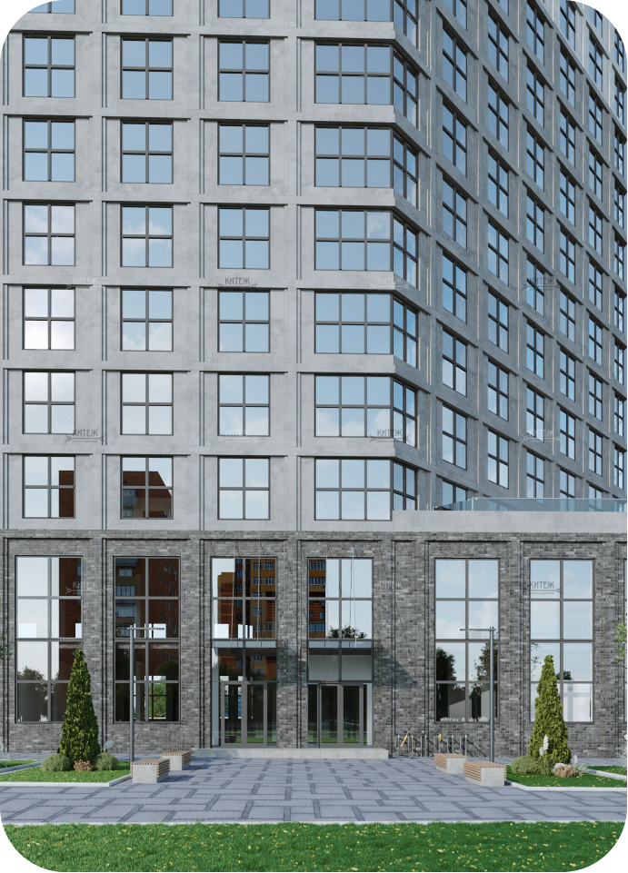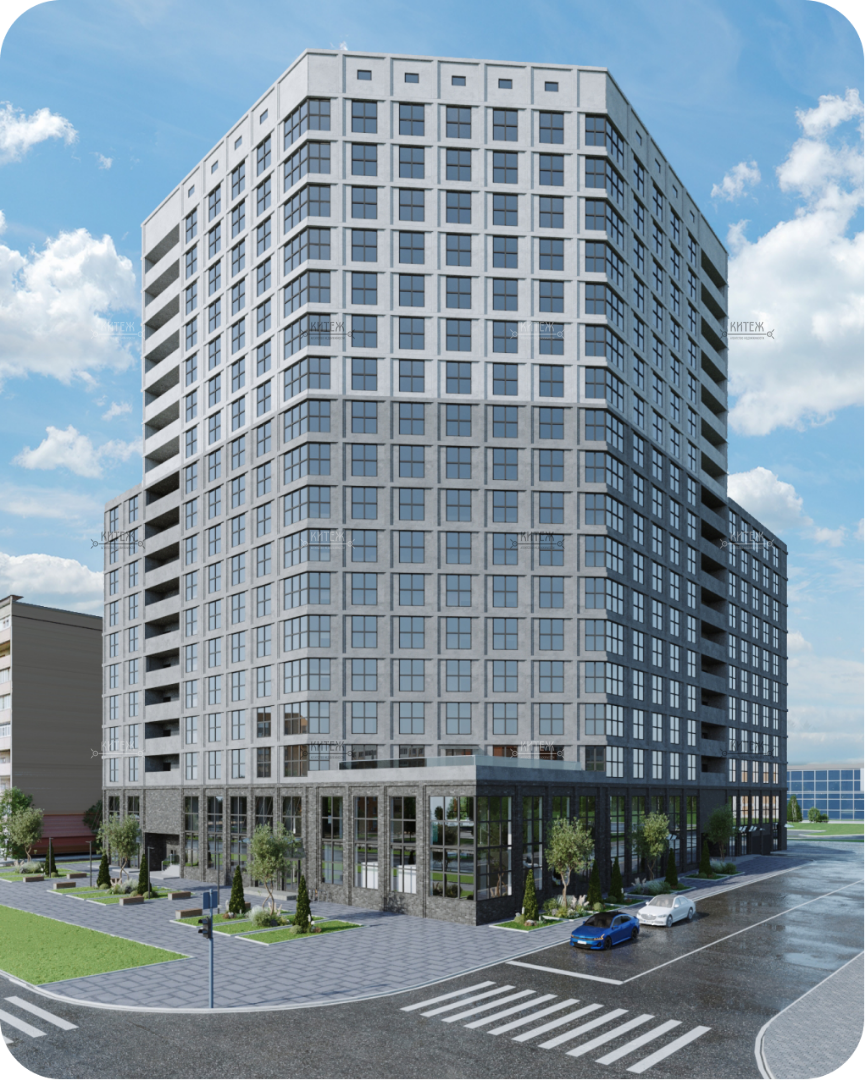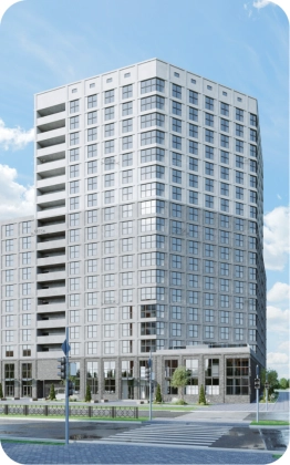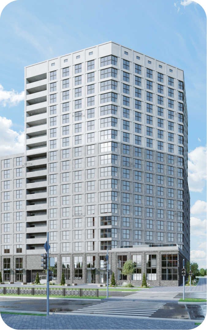 Монолитный дом переменной этажности (12-18 этажей) с двумя уровнями подземной парковки и 2 надземными уровнями коммерческих помещений. На 1 этаже торговая галерея, на 2 этаже деловая офисная часть.