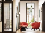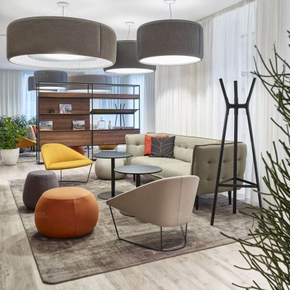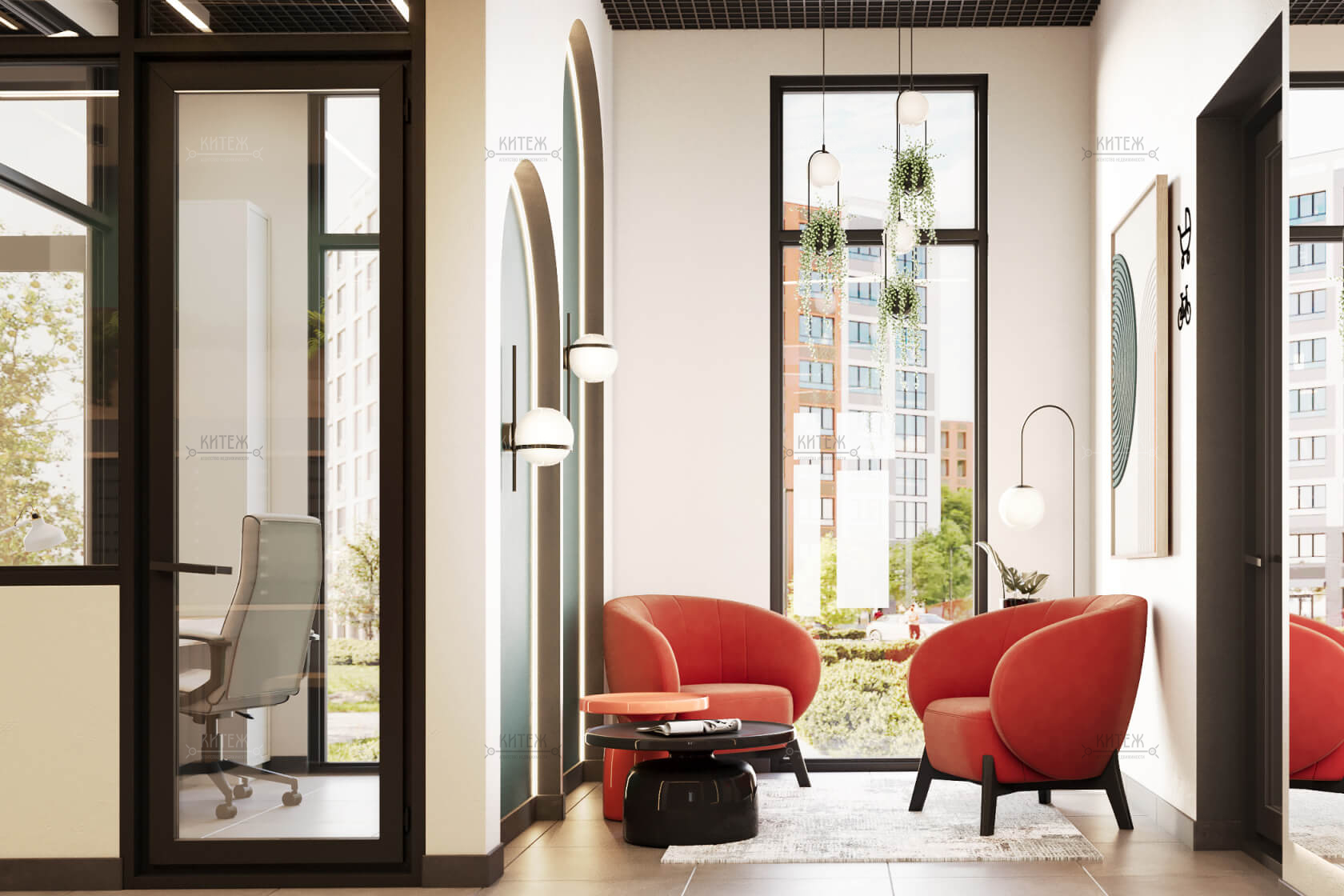 В каждом подъезде – стильная зона ожидания с мягкими диванами, зеленью и современными картинами.