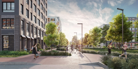 ОСТРОВА — экосистема жилых кварталов, расположенных вдоль пешеходного бульвара. Каждый квартал–«остров» состоит из нескольких домов средней этажности, объединенных единым двором.